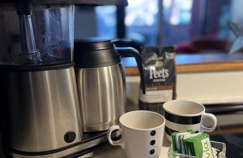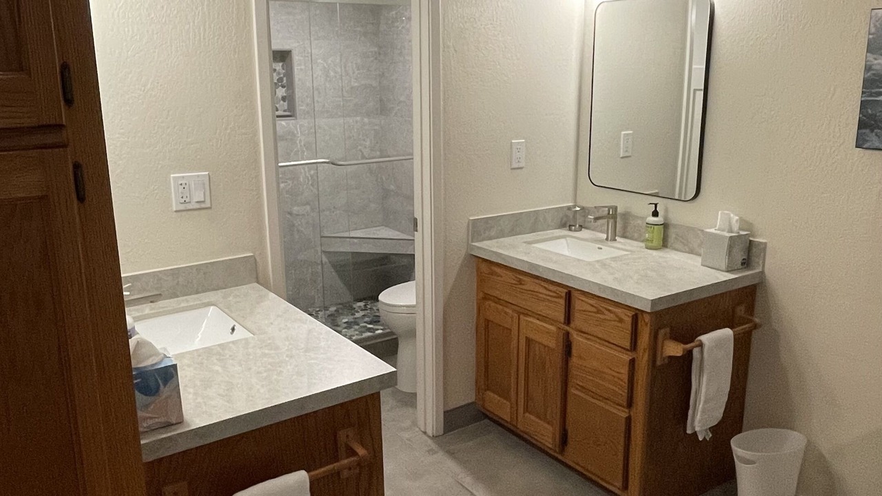 There are two bedrooms on the lower floor. The master bedroom has a new King bed, and a full bathroom with shower and two vanity sinks. The guest bedroom has two new twin XL beds that can be converted to a King bed, depending on your needs. There is a full bathroom in the hall outside the guest bedroom with a shower/tub combination. The loft bedroom is up the spiral stairs from the main floor, and has two new twin XL beds that can be converted to a King bed, depending on your needs. Additional sleeping available with a Queen Aerobed with linens/blanket/pillows.