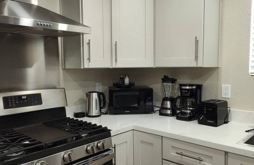Welcome to our house in the ranch!! Close to the freeway, grocery store, gas station, yet peaceful, quiet, & safe. Two bedrooms. Sofa bed is a full size bed. A twin rollaway bed available when requested in advance. Home sectioned off from the ranch foe more privacy. The owner's barndominium sits on the 2 1/2 acre ranch. Several chickens roam around. A small dog (Modelo. yes, as in the beer :). Park up to 5 cars. More parking available in the street. Ideal to spend the night or a month.