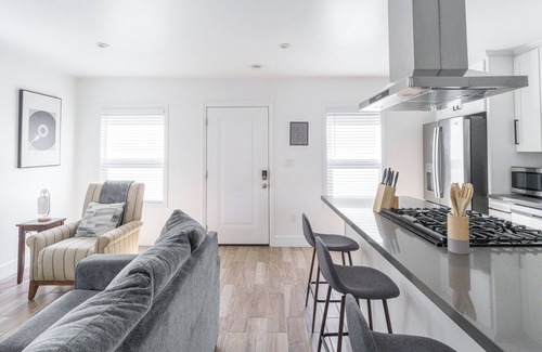 Consider this your home away from home while you visit the fashionable East Side Costa Mesa and Newport Beach. This home is only a mile from the Newport Beach Peninsula and walkable to great restaurants, bars, coffee shops and grocery stores. The beautiful Heller park is right across the street and the gorgeous Back Bay is less than 2 miles away. This stylish property features 2 cozy on suite bedrooms with 2 queen beds, 1 twin bed, plus a fold out travel twin bed, perfect for a family or a group of friends. Enjoy the amazing amenities like fully stocked kitchen, heating, WiFi, AC, and a washing machine plus dryer during your stay. Make your holiday one for the books with a stay at our place.