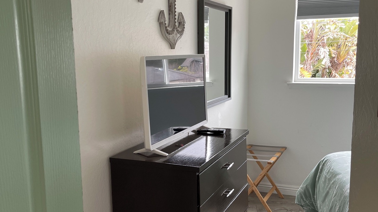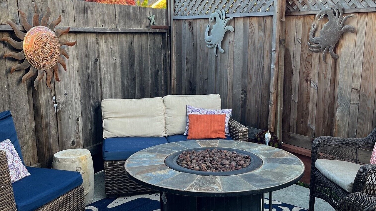 Our family beach place is a unique style duplex, (2 separate units), one is accessed at street level and the other is above. The 3 BR 1 BA is our upstairs unit. It has a porch area where you can sit out and have a morning cup of coffee or an evening glass of wine. There is a filtered view of the Boardwalk Log Ride, wharf and bay. The kitchen has recently been remodeled with new appliances and a dishwasher. It opens up to the living room and dining area. The living room is light and bright. The bedrooms and the bathroom are down the hall, separating the living and dining area nicely. Bedroom #1 has a queen size bed and smart tv, bedroom #2 also has a queen, bedroom #3 has a bunkbed, single bed, and a roll away twin bed. There is a private patio area with gas grill, fire pit and colorful market lights. If you bring bikes they can be stored here as the gate has a lock. If the downstairs guests have bikes, they can store there as well. The patio is for your use but with potential sharing if items need to be secured.