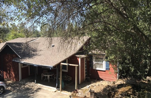 Located on a quiet eddy at the river's bend, this updated 1946 cabin on 4 acres is the perfect mix of hidden solitude and in-town location. Come dip in the river, play in the creek, lay in the sand, launch or land your craft! Fish, pan for gold, play fetch with Fido! Watch rafts, kayaks, SUP's float down the river--from the beach, covered deck, or living room. This cabin features 3 bedrooms and a large living room; the separate guest house may also be rented to provide a private, charming 4th bedroom. You will fall asleep to the sound of the river and babbling creek below! For larger parties a second cabin on the property may be available; cabins are situated to ensure full privacy yet offer convenient access if desired. Many activities and sightseeing opportunities abound locally--Gold Rush history, rafting, biking, hiking, and other Wild West adventures!