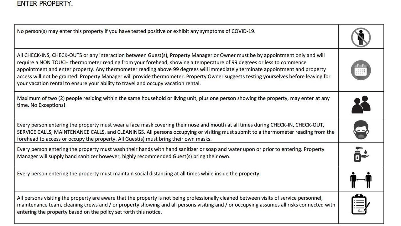 21: Primary Occupant must sign Property Owner's Vacation Rental Agreement with Property Disclosures.
