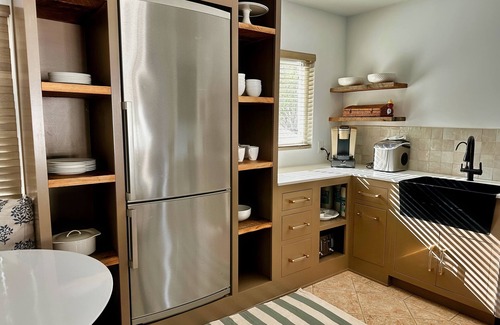 This stylish 2nd level Guesthouse has plenty of space, making it an excellent choice for families. Sleeps 2 to 5 guests. 860 Sq. Feet, 2nd Story, there are 15 Steps on the stairs. Just a ½ Block to East Beach. Fireplace, Spacious Bathroom with walk-in shower, Complimentary bottle of wine, King Bed, Queen Bed, Sofa Sleeps 1 Person, Fully Stocked Kitchen, Smart Television, Wi-fi, Beach Chairs & Towels, Valuables safe, Bedroom’s & Living Room all have Ceiling Fans, Pet Friendly. Minimum 27 age requirement. All adult guest’s must provide government issued ID at time of booking & sign/return Booking Agreement.