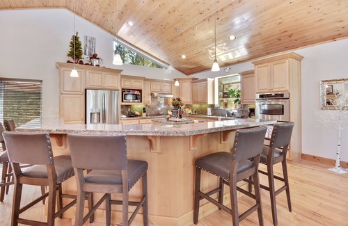 The open living area is great for entertaining to accommodate large families with a huge fully equipped kitchen, large comfortable living room and a large expandable dining room table with seating for 12. All new appliances, furnishings and decor make this the perfect home base for your Lake Tahoe destination.