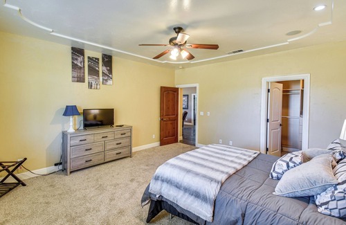 Unwind in style at this modern 4-bedroom, 2.5-bathroom vacation rental in Delhi, CA! Prepare your favorite meal in the elegant kitchen or on the grill and enjoy a pleasant meal outside with the family. This home also features convenient step-free access and a jetted tub for ultimate relaxation. After walking along the water at McConnell State Recreation Area, curl up by a fireplace of your choice and watch a movie. Your memorable stay with loved ones awaits!