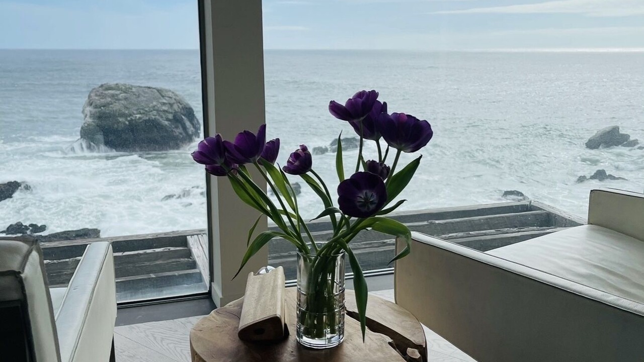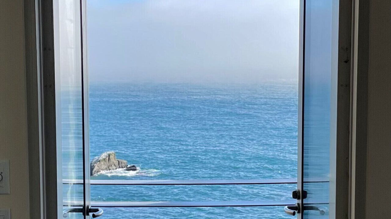 Enjoy all of the property's outdoor space—both oceanfront and a private courtyard with outdoor seating, fire pit, a backdrop of beautiful coastal trees with more ocean views.