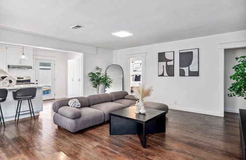 ★This space has been precisely curated to provide the utmost comfort for our guests during their travels. Kindly note that to maintain a peaceful ambiance, we do not permit parties, photo shoots, video shoots or other business activities. Please be aware there is a Minut device installed in the living room which does not record audio but actively monitors for high decibel levels, crowds and cigarette smoke in order to prevent parties, damage or neighbor complaints. There are exterior cameras facing the front door, driveway, and side entrances. We strive to create a peaceful experience for all our guests.