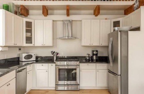 Accommodations: with two comfortable bedrooms, two full bathrooms and a large open loft with up to four beds (2 queens, 1 split king/2 twins, queen sofa/futon) accessed by a stylish spiral staircase, the house cozily sleeps lots of people. The gourmet kitchen is open to the living areas so the vacationing cook is part of the action and the surrounding beauty. The deck is enormous and wraps around the house so you can enjoy coffee in the morning, reading in the afternoon, and dining outside in the evening. We also have super fast wifi (fiber) & an entire house backed by Tesla batteries if there's an outage if you need to work (or just have electricity)!