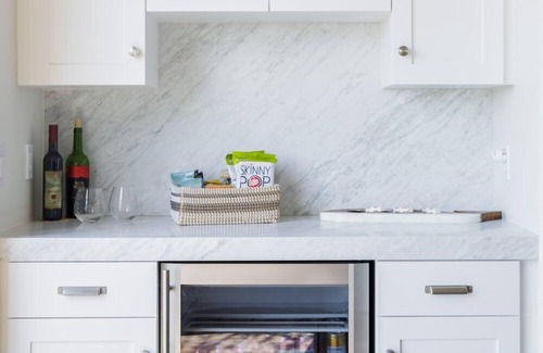 Expansive La Cantina doors open up the entire back of the house to the newly extended rear deck with stairs down to the back yard, which has also been re-done as of summer 2018. The back yard now offers Restoration Hardware patio furniture, RH fire pit, an outdoor TV, private hot tub, and two patio area heaters.