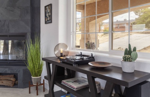Step into this well designed house and you will experience a feeling of calmness and sophistication. Enjoy dinners while looking out the mountains and listening to an old record on the vinyl player. Stargaze using the telescope at night and grill some s'mores over the open fire pit (when there is no fire ban). Sleep in one of the comfortable beds before you head out on a hike at the national park.