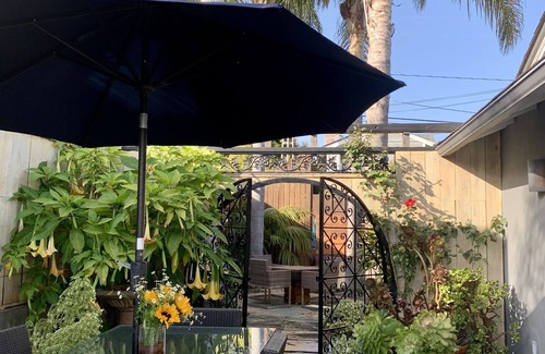 The master bedroom with a king bed has its own bathroom and a sunny private courtyard.