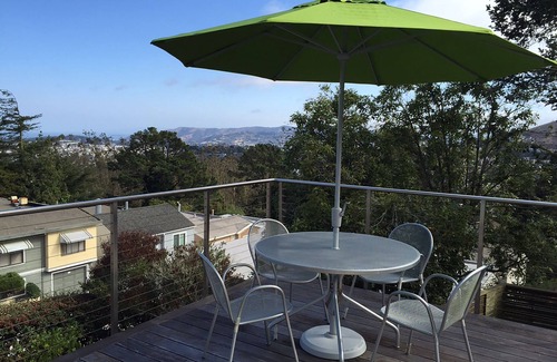 Private 2-bedroom top floor of a single family house with sweeping views of San Francisco bay set in a quiet neighborhood with plenty of free street parking. Access is through a separate entrance. Just a walk away to the top of Twin Peaks. A perfect combination of quiet living and walking distance to public transportation (Forest Hill Muni station). One bedroom with a queen size bed, second bedroom with two twin size beds. You’ll love it because of the views, the ambiance, and the location.