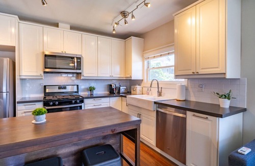 Guests have direct and private access to the unit from the main entrance on Fern Street (center door). Within the unit are two private full baths, kitchen, and two bedrooms. Please note that the backyard is not accessible to guests.