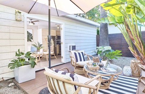 MONTHLY DISCOUNT! NEWLY REMODELED! Modern cozy one bedroom tropical inspired private guesthouse with separate entrance & private fenced in yard in a quiet neighborhood. Free street parking right in front of your entrance. CENTRALLY LOCATED explore the best that Southern California has to offer from gorgeous beaches like Laguna & Newport to Disneyland (5.5 miles), Knott’s Berry Farm (4.8 miles), to the nightlife & foodie paradise of L.A. (18 miles) *PET FEE is $10 per pet per night (2 pet max)