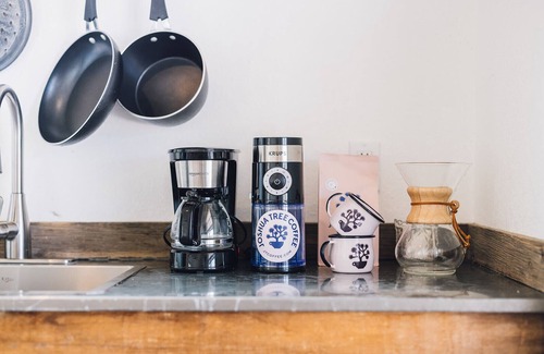 - Local Organic Joshua Tree Coffee Co whole beans and an assortment of teas