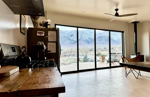 Designed and inspired by the rocks of the Alabama Hills, this spacious unique Dwell studio intercepts with the breathtaking views of Mount Whitney and the Eastern Sierra's. Close to Mt Whitney portal, Horse shoe meadow and famous other trails, excellent for day hikes. We are in the epic center of the lowest( Death Valley),highest(Mt Whitney) and the oldest(Bristlecone tree forest).