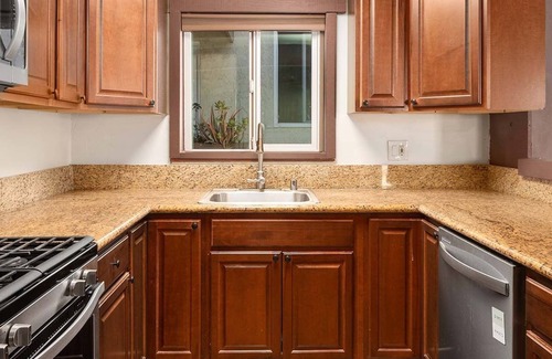 The main living area (seats 5-6 adults) and large dining table (seats 8) will provide plenty of room to congregate comfortably.You will have a very “roomy” stay for everyone. It is situated on what I believe is the best courtyard in South Mission beach.